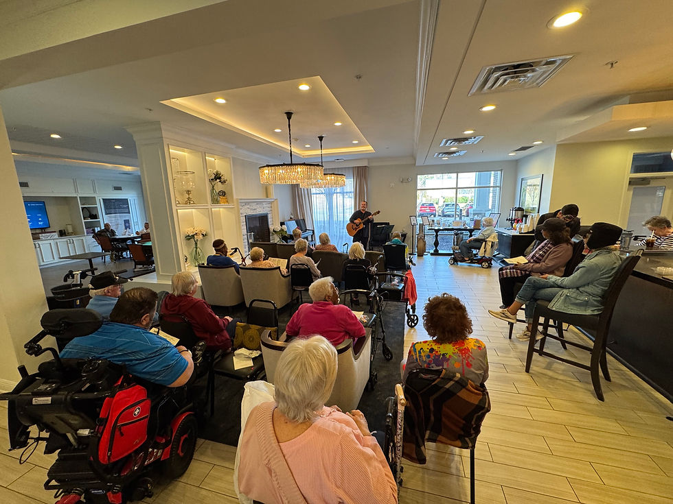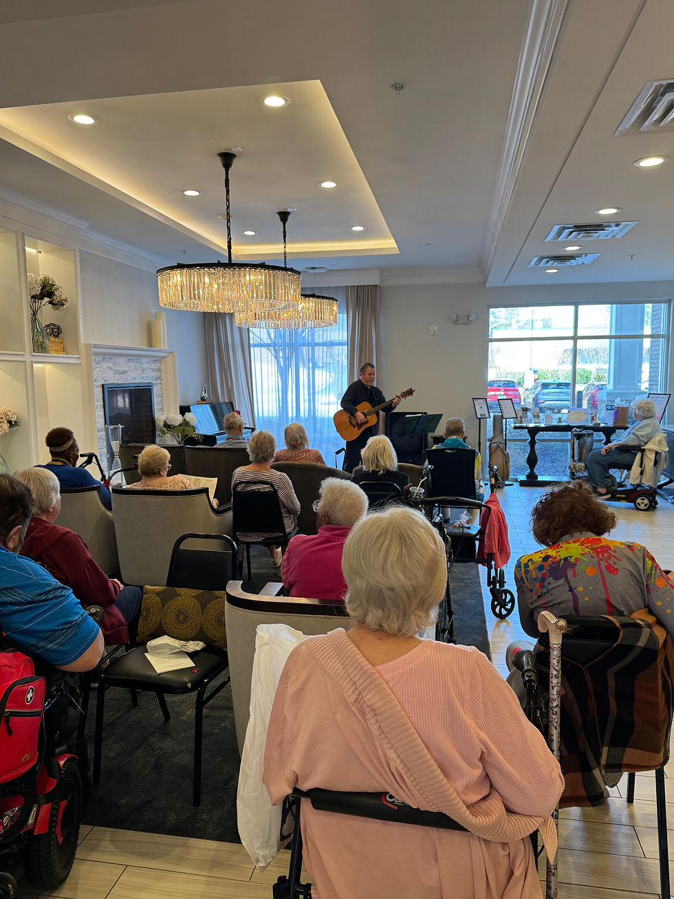 DAVE FOUTS PERFORMED AND LED A SING-ALONG WITH 27 RESIDENTS PARTICIPATING. PAULA ZEMBAL FROM ALZHEIMER'S ASSOCIATION WAS THE SPECIAL SPEAKER. DOOR PRIZE. FAVORS FOR ALL! HOSTED BY DR. GABRIEL TRINCADO.